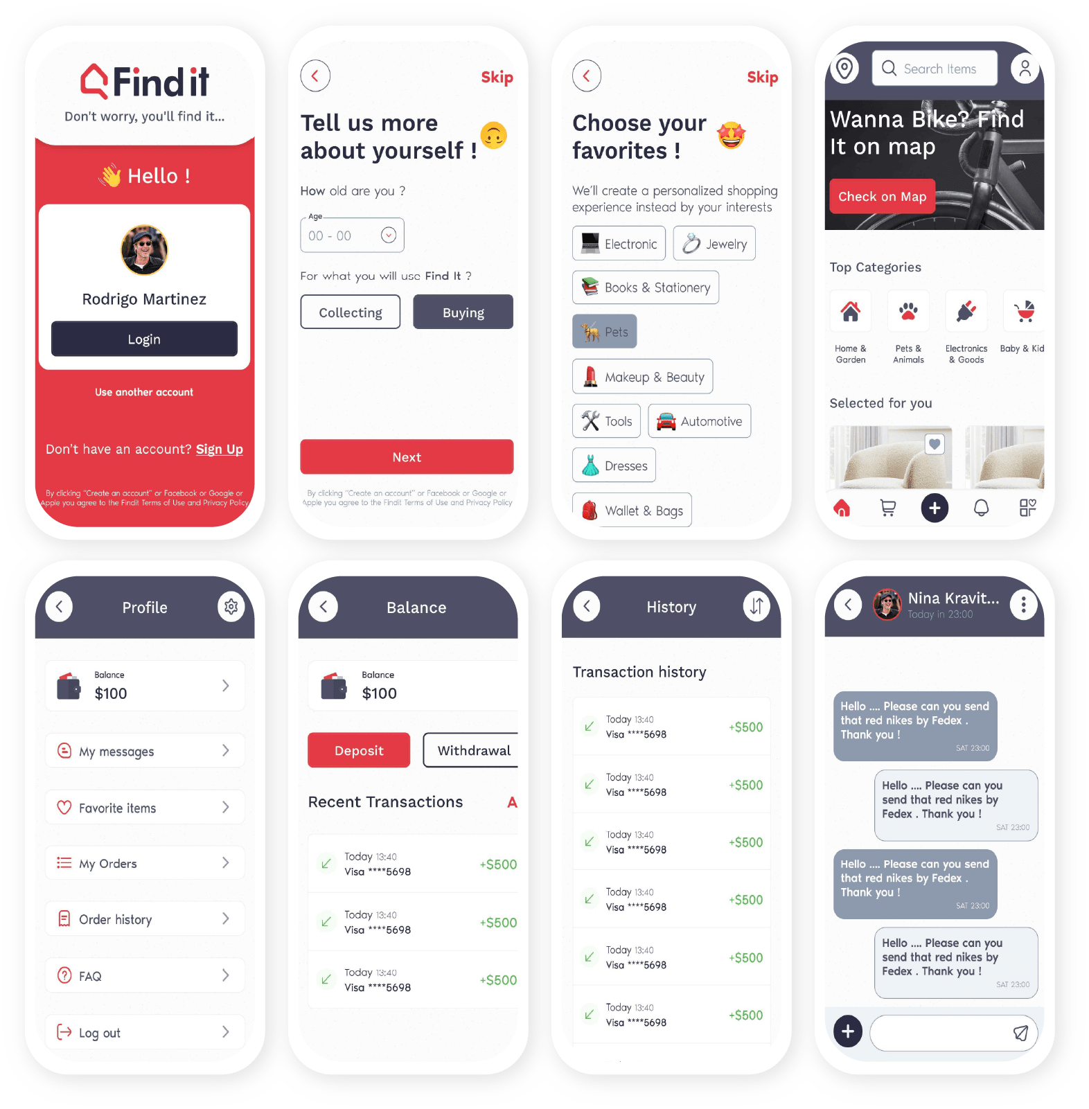 Development of FindIt! is in progress. The homepage and user onboarding are finished.